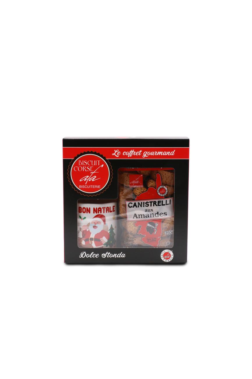1. Coffret cadeau contenant 1 sachet de Canistrelli aux amandes 350g et 1 Mug "Babbu".